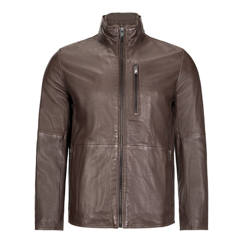 This easy to wear leather jacket from Marc NY is crafted from smooth lambskin leather and detailed with a removable quilted zip-front bib to keep you warm from the winter cold. It features two lower welt pockets and a vertical chest zipper pocket.