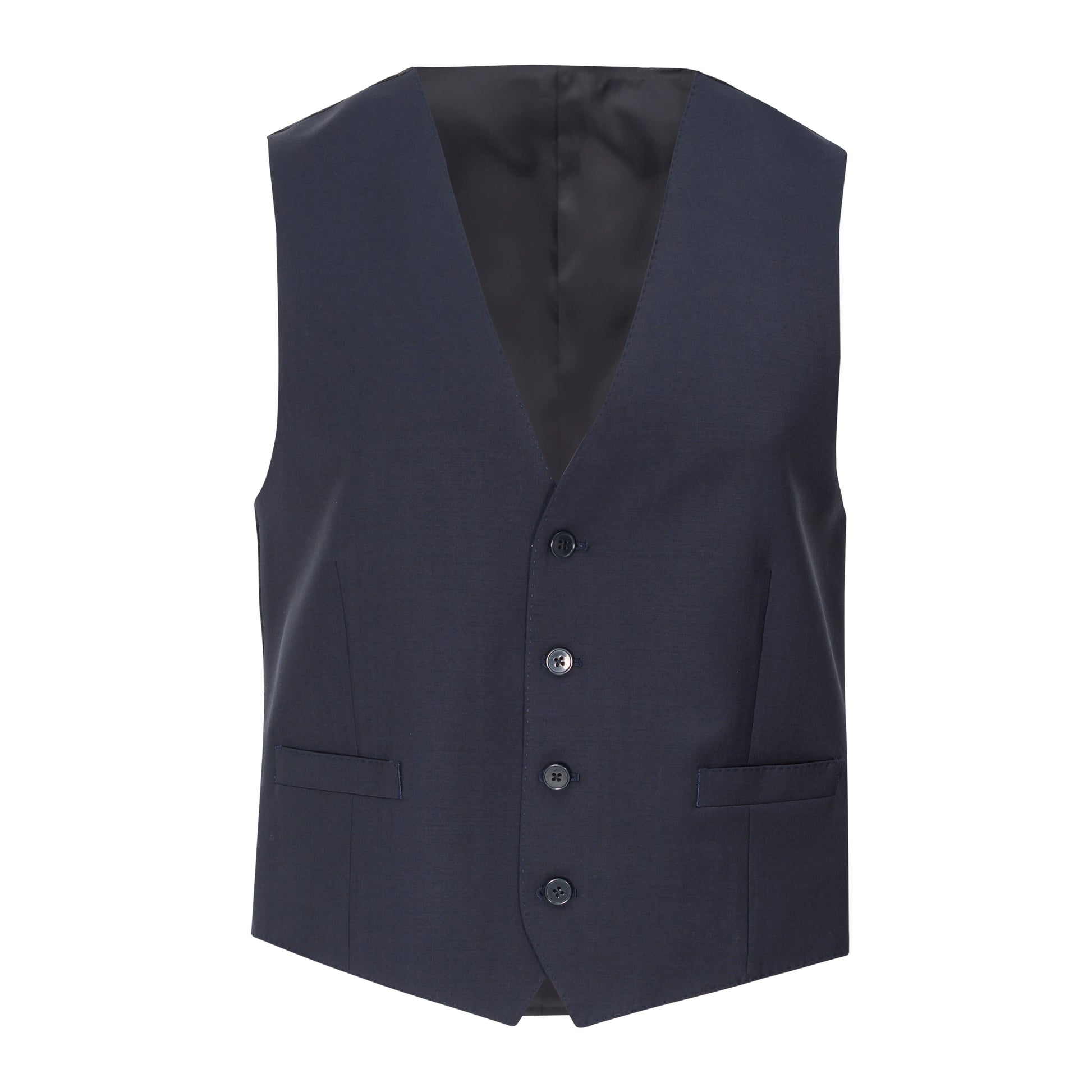This five button vest is made of a perfect year-round weight wool rich blend in an updated slim fit silhouette. The black, navy and charcoal colors are a blend of 70% wool, 25% polyester and 5% spandex for stretch comfort. Perfect for completing a formal or business occasion outfit or even consider wearing it just with the matching pants!