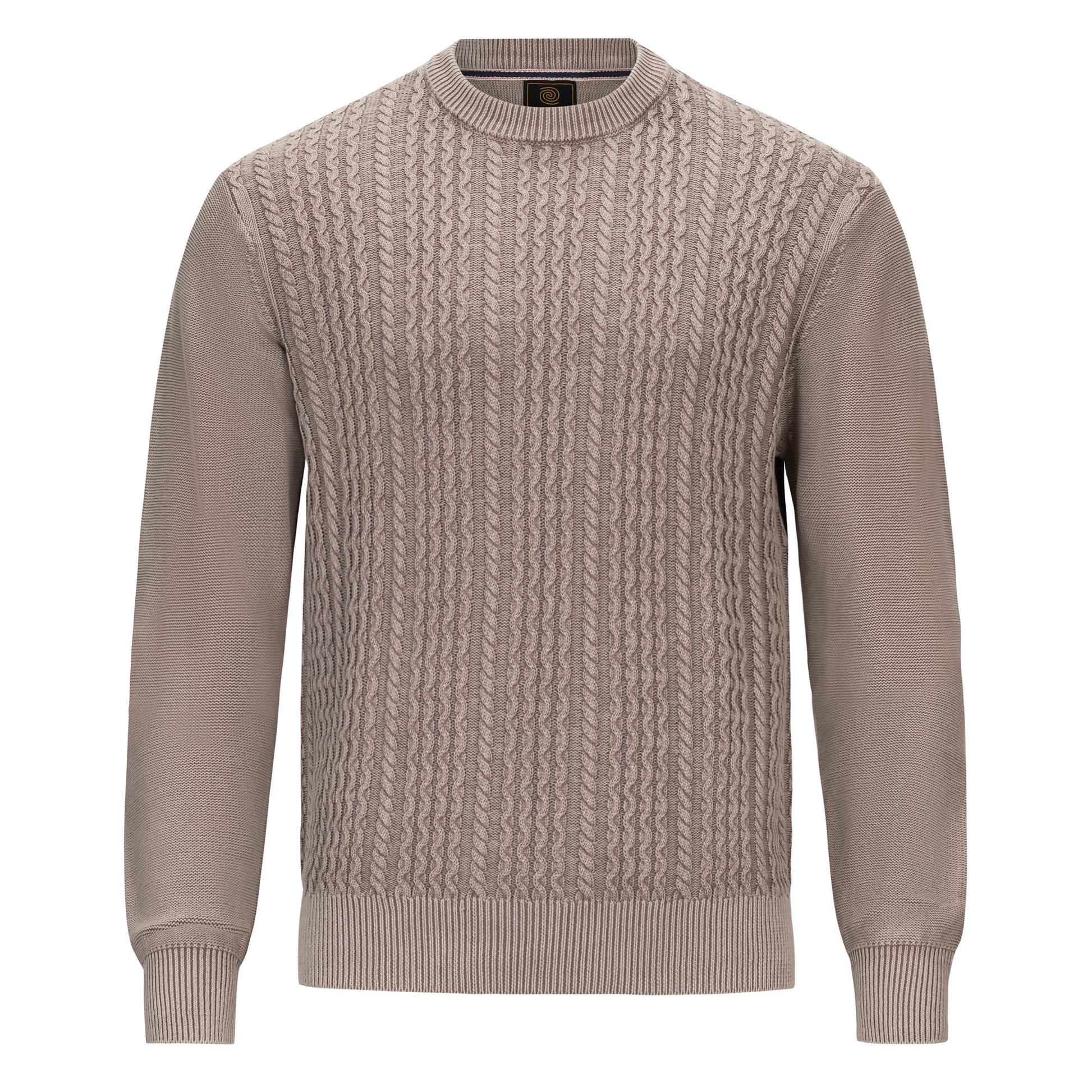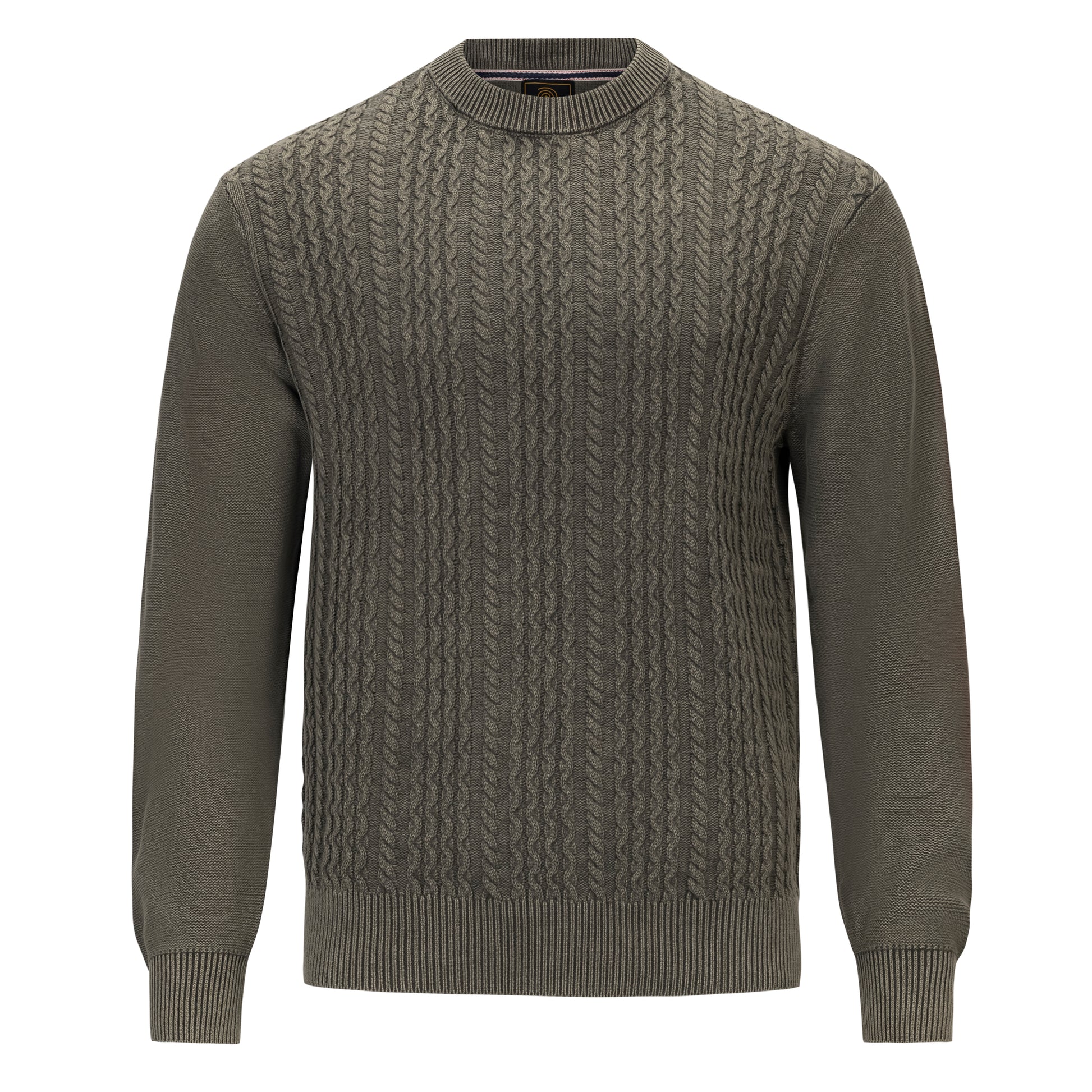 This 100% cotton cable crew neck sweater from F/X Fusion is sandwashed giving it a very cool look with the highs and lows coming through in the color. It’s a great casual sweater to layer with jeans or khakis.