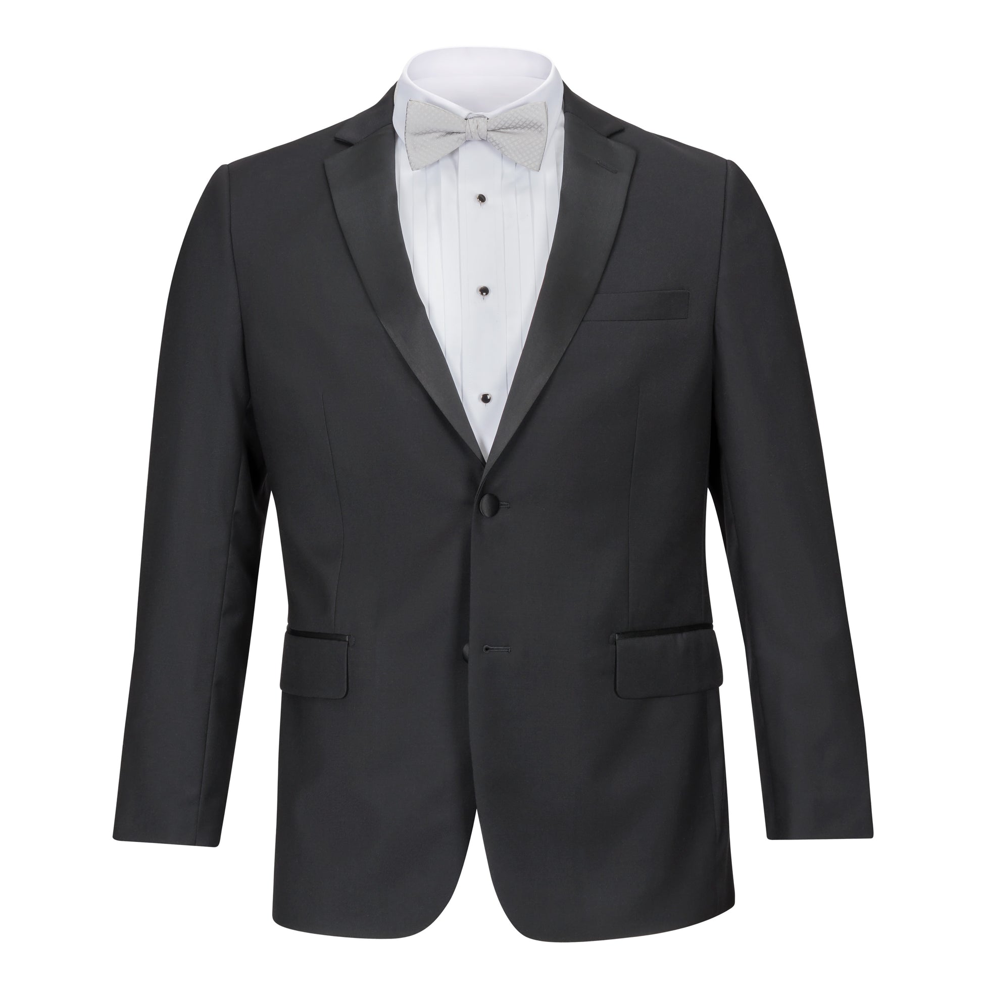 A superb value for a tuxedo. This pure worsted wool tuxedo is modeled as a 2 button coat with a satin notch lapel, satin trimmed flap pockets, side vents and a flat front satin trimmed pant. Wear it twice and you’ve covered the cost of rental, and better still it’s yours and has never been worn by anyone else!