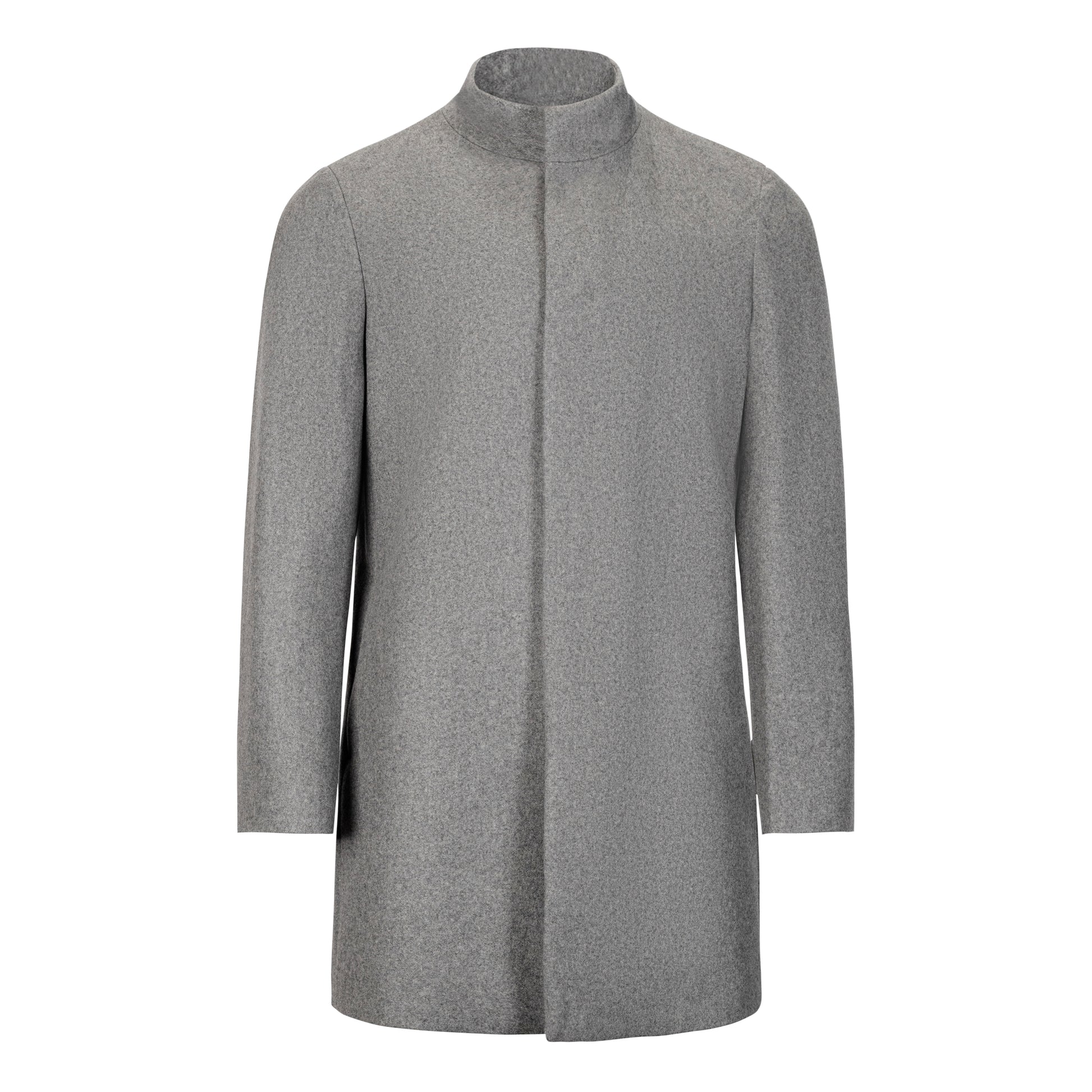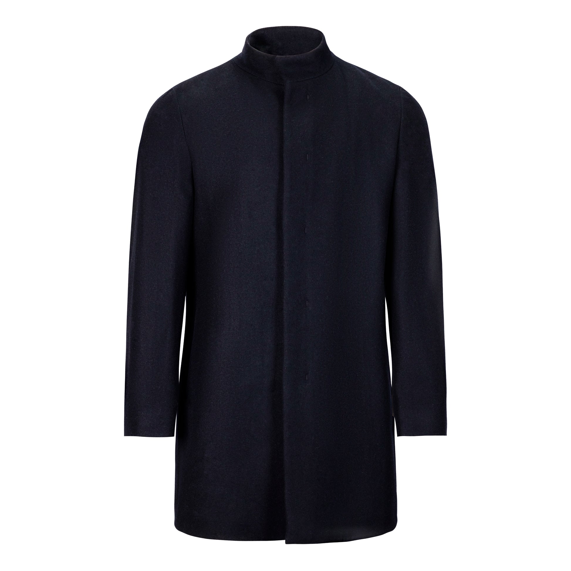 The Calvin Klein Mayden topcoat is a sleek, modern layer crafted from a warm wool-blend fabric. It features a streamlined silhouette, a hidden zipper with a snap-button front closure, and a stand-up collar. Fully lined with side pockets, this polished topcoat pairs perfectly with suits or elevates everyday looks.