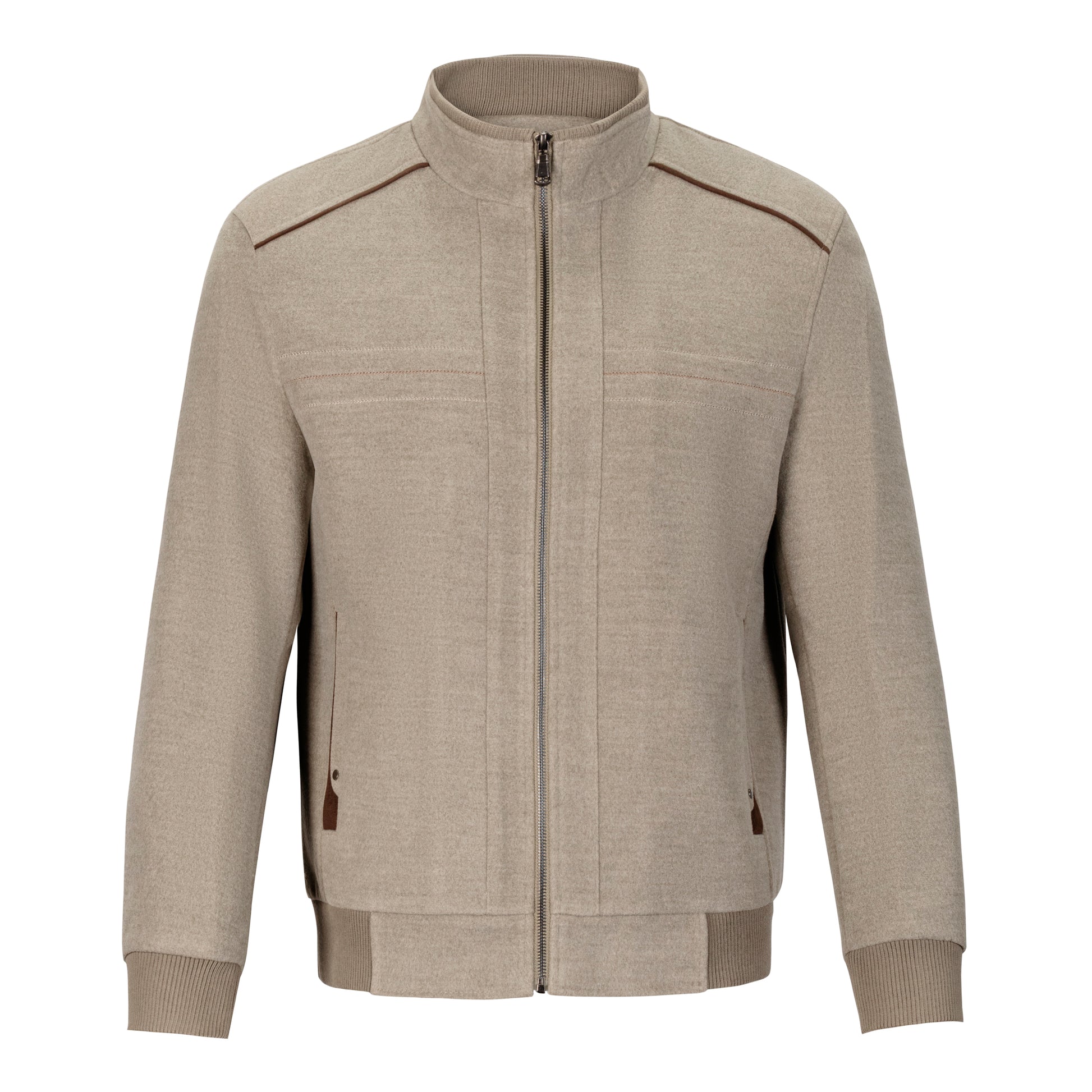 A great mid-weight micro fleece jacket with faux suede piping and stand collar – done in a fresh sand color.