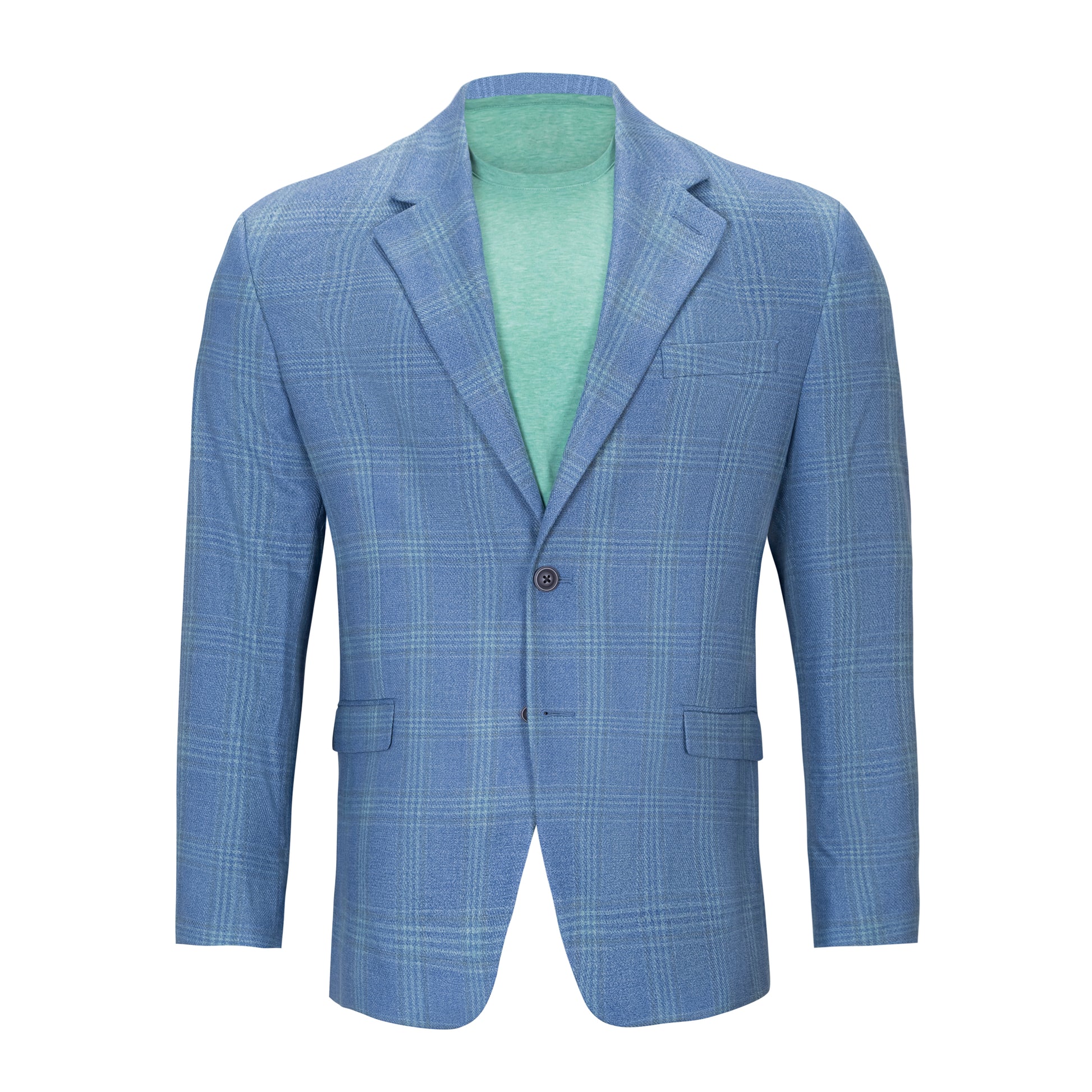 A great stand out sportcoat for the spring summer season, combining the perfect blue with a teal green windowpane. Perfect to dress down with a tee shirt and jeans, or over your favorite button up shirt! You’ll be sure to turn heads in a jacket like this one!