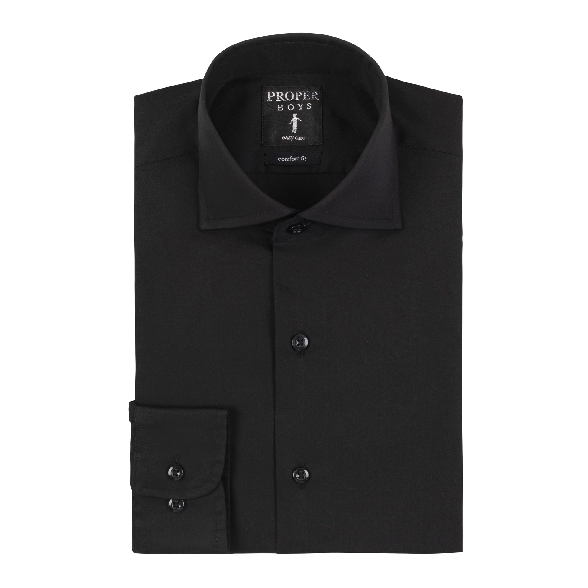 This solid boys dress shirt is made from a cotton blend for added performance and comfort. The modern silhouette features a spread collar with button cuff.