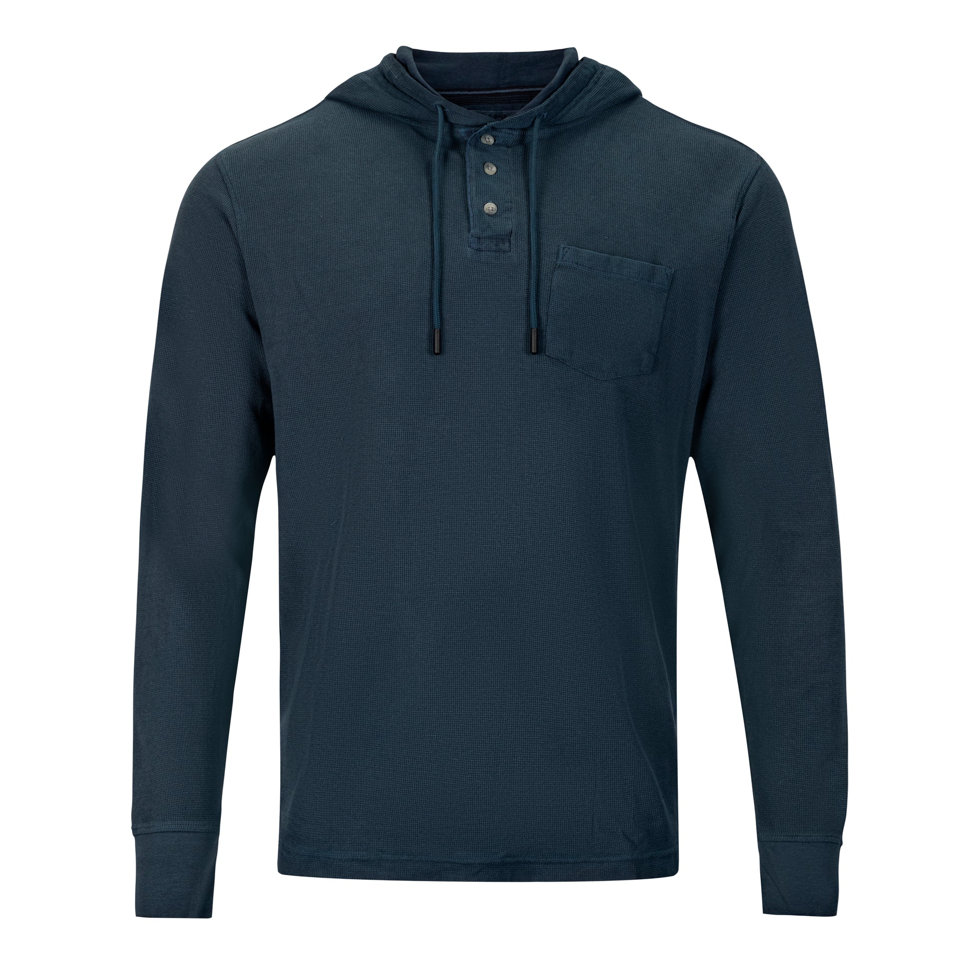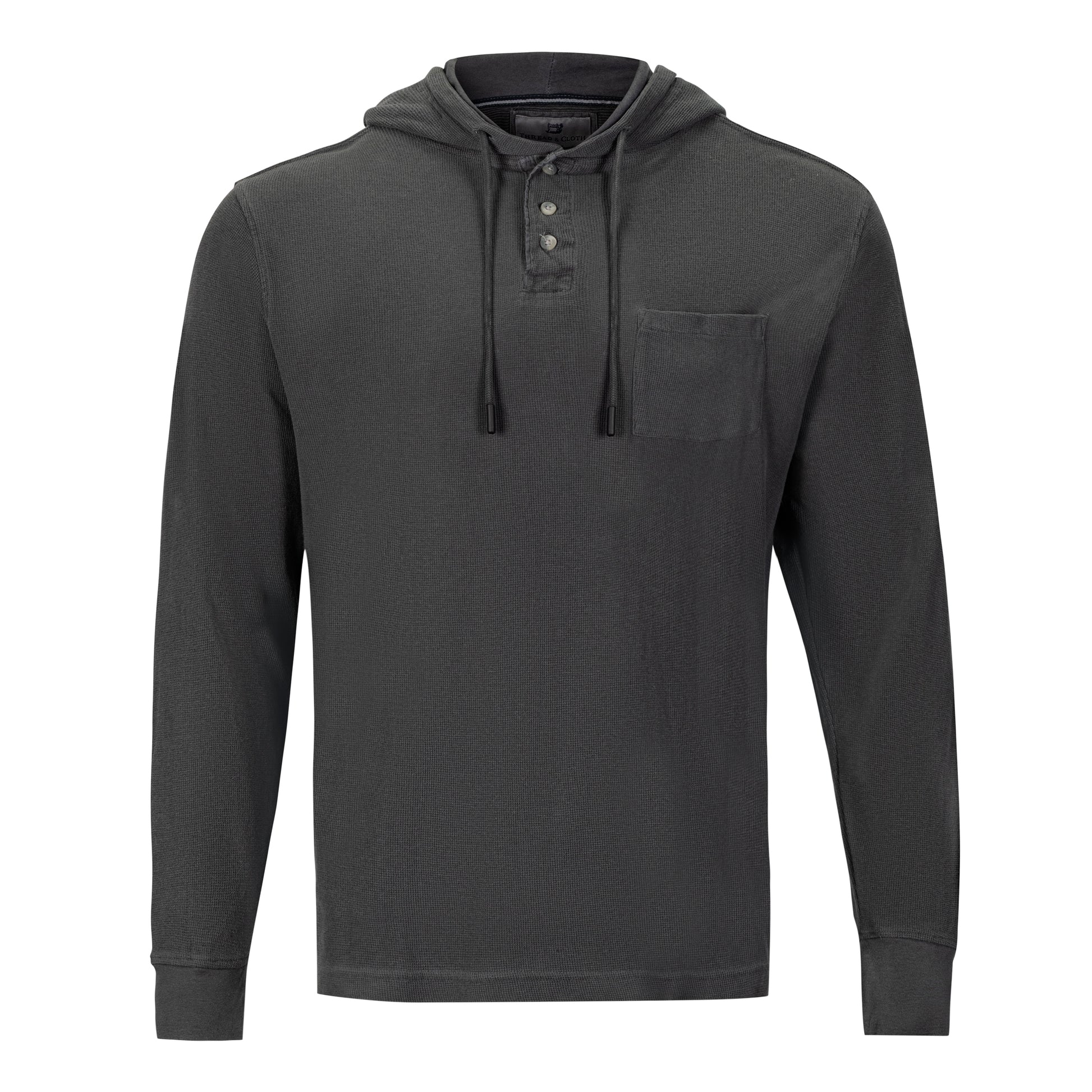 An easy to wear waffle hoodie made from 100% cotton that is garment washed and pigment dyed to give it a cool lived-in appearance. Great on its own with jeans or as a layering piece for the season.